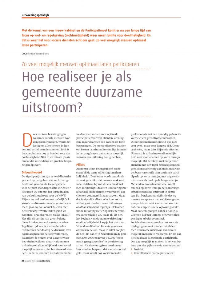 Hoe realiseer je als gemeente duurzame uitstroom (Sociaal Bestek jan 2013) ArtikelenDoor Martijn13 januari 2013